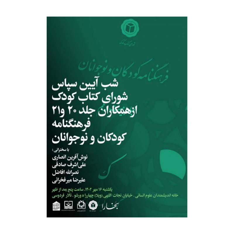 شب آئین سپاس شورای کتاب کودک از همکاران جلد بیستم و بیست و یکم فرهنگنامه کودکان و نوجوانان برگزار شد. این برنامه عصرگاه روز یکشنبه، شانزدهم مهرماه در برنامهای از سلسله نشستهای شب بخارا و در سالن فردوسی خانه اندیشمندان علوم انسانی برگزار شد. آغازگر این نشست، علی دهباشی-مدیر مسئول مجله بخارا- بود که با […]