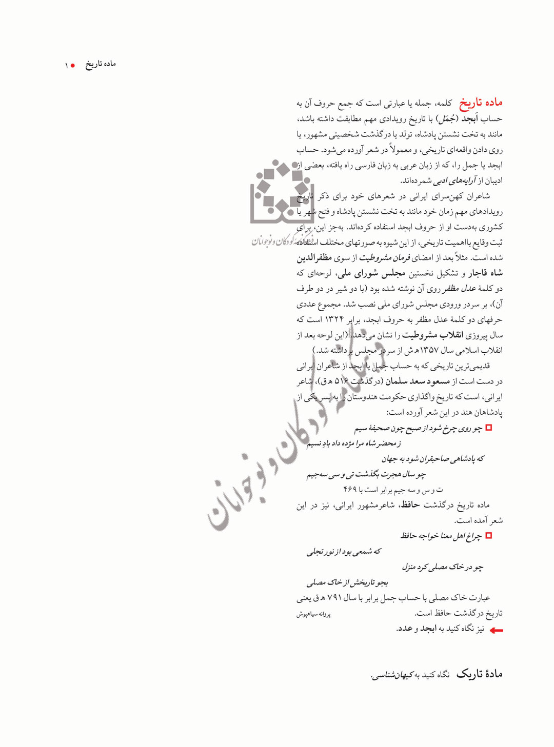 ماده تاریخ کلمه، جمله یا عبارتی است که جمع حروف آن به حساب اَبجد (جُمَل) با تاریخ رویدادی مهم مطابقت داشته باشد، مانند به تخت نشستن پادشاه، تولد یا درگذشت شخصیتی مشهور، یا روی دادن واقعهای تاریخی، و معمولاً در شعر آورده میشود. حساب ابجد یا جمل را، که از زبان عربی به زبان فارسی راه یافته، بعضی از ادیبان از آرایههای ادبی شمردهاند.