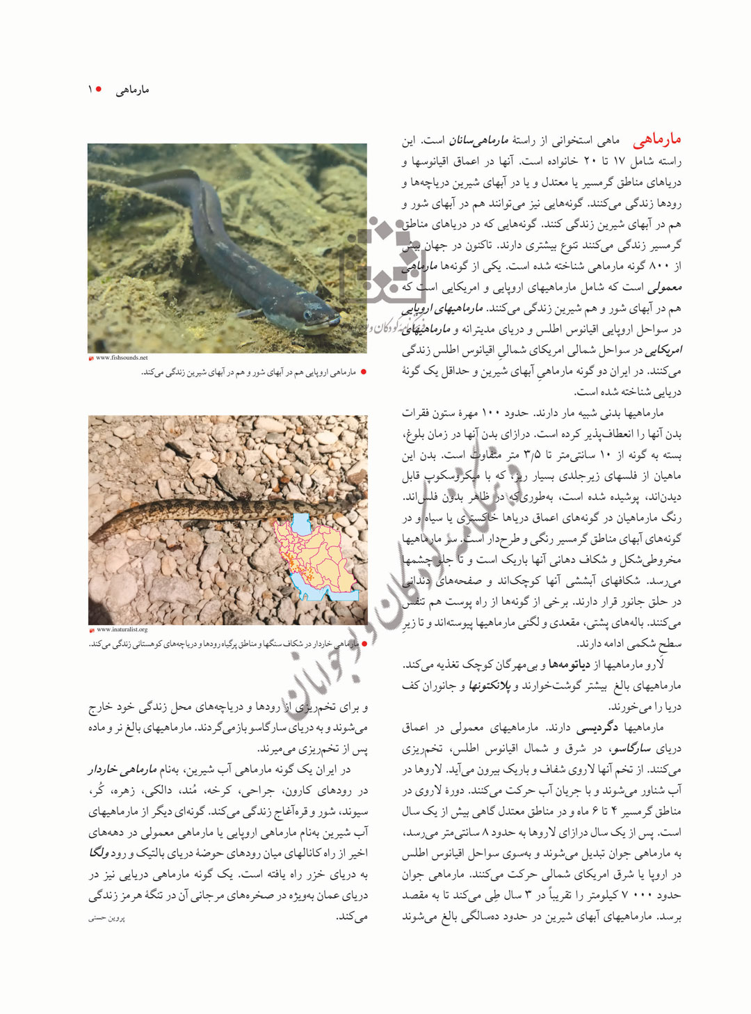 مارماهی ماهی استخوانی از راستۀ مارماهیسانان است. این راسته شامل 17 تا 20 خانواده است. آنها در اعماق اقیانوسها و دریاهای مناطق گرمسیر یا معتدل و یا در آبهای شیرین دریاچهها و رودها زندگی میکنند. گونههایی نیز میتوانند هم در آبهای شور و هم در آبهای شیرین زندگی کنند. گونههایی که در دریاهای مناطق گرمسیر زندگی میکنند تنوع بیشتری دارند. تاکنون در جهان بیش از ۸۰۰ گونه مارماهی شناخته شده است. یکی از گونهها مارماهی معمولی است که شامل مارماهیهای اروپایی و امریکایی است که هم در آبهای شور و هم شیرین زندگی میکنند. مارماهیهای اروپایی در سواحل اروپایی اقیانوس اطلس و دریای مدیترانه و مارماهیهای امریکایی در سواحل شمالی امریکای شمالیِ اقیانوس اطلس زندگی میکنند. در ایران دو گونه مارماهیِ آبهای شیرین و حداقل یک گونۀ دریایی شناخته شده است.