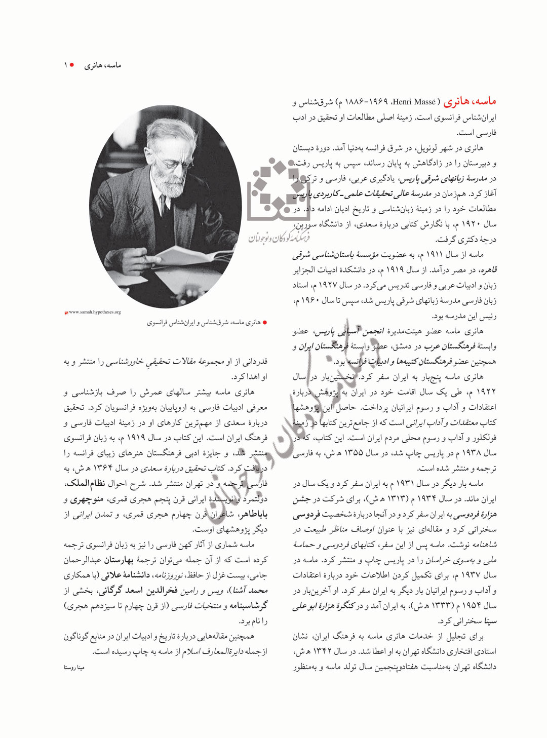 ماسه، هانری (Massé Henri، 1886-1969 م) شرقشناس و ایرانشناس فرانسوی است. زمینۀ اصلی مطالعات او تحقیق در ادب فارسی است. ماسه، هانری