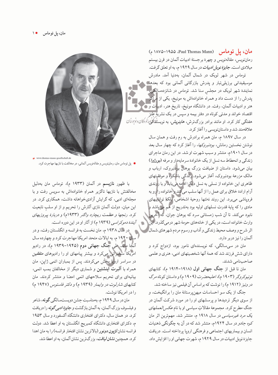 مان، پل توماس (Paul Thomas Mann، 1875-1955 م) رماننویس، مقالهنویس و چهرۀ برجستۀ ادبیات آلمان در قرن بیستم میلادی است. جایزۀ نوبل ادبیات در سال 1929 م، به او تعلق گرفت. مان، پل توماس مان، پل توماس