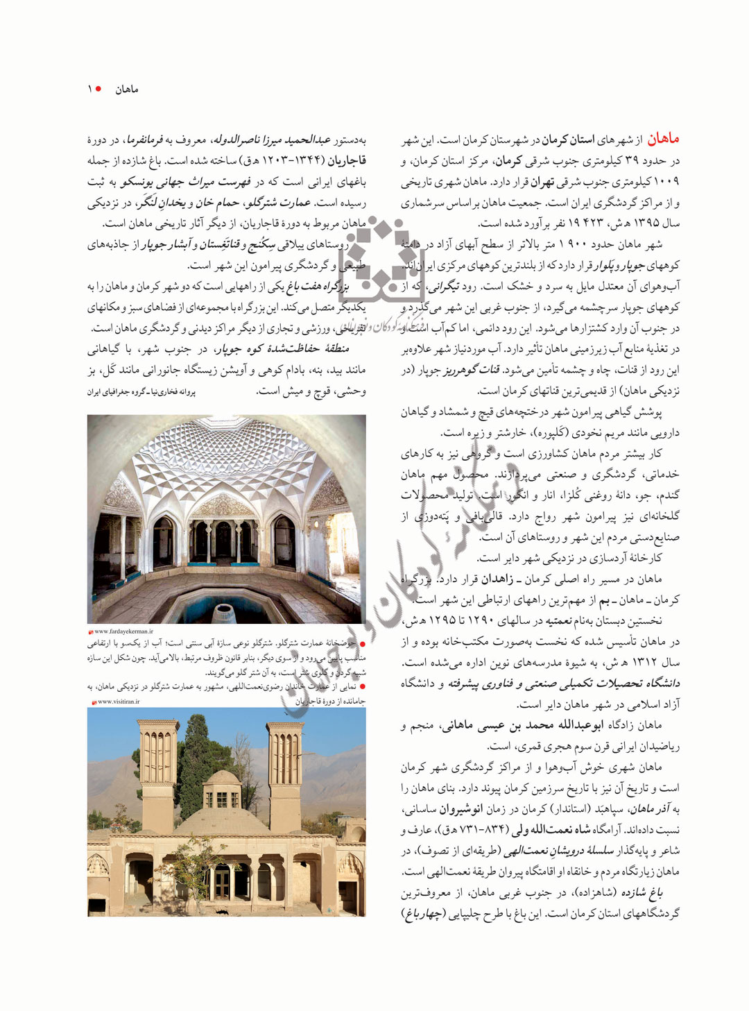 ماهان از شهرهای استان کرمان در شهرستان کرمان است. این شهر در حدود 39 کیلومتری جنوب شرقی کرمان، مرکز استان کرمان، و ۱۰۰۹ کیلومتری جنوب شرقی تهران قرار دارد. ماهان شهری تاریخی و از مراکز گردشگری ایران است. جمعیت ماهان براساس سرشماری سال 1395 ﻫ ش، 423 19 نفر برآورد شده است.