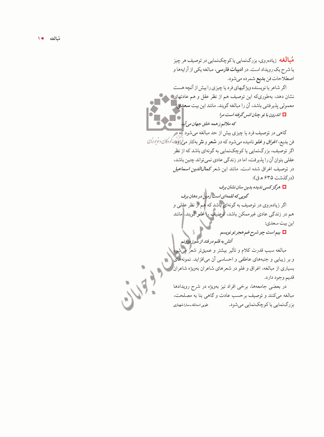 مُبالغه زیاده‌روی، بزرگ‌نمایی یا کوچک‌نمایی در توصیف هر چیز یا شرح یک رویداد است. در ادبیات فارسی، مبالغه یکی از آرایه‌ها و اصطلاحات فن بدیع شمرده می‌شود.
