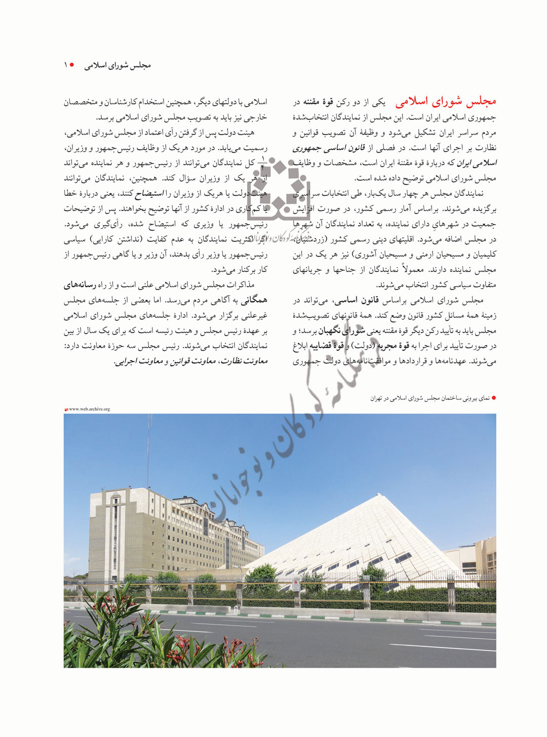 مجلس شورای اسلامی یکی از دو رکن قوۀ مقننه در جمهوری اسلامی ایران است. این مجلس از نمایندگان انتخابشدۀ مردم سراسر ایران تشکیل میشود و وظیفۀ آن تصویب قوانین و نظارت بر اجرای آنها است. در فصلی از قانون اساسی جمهوری اسلامی ایران که دربارۀ قوۀ مقننۀ ایران است، مشخصات و وظایف مجلس شورای اسلامی توضیح داده شده است.