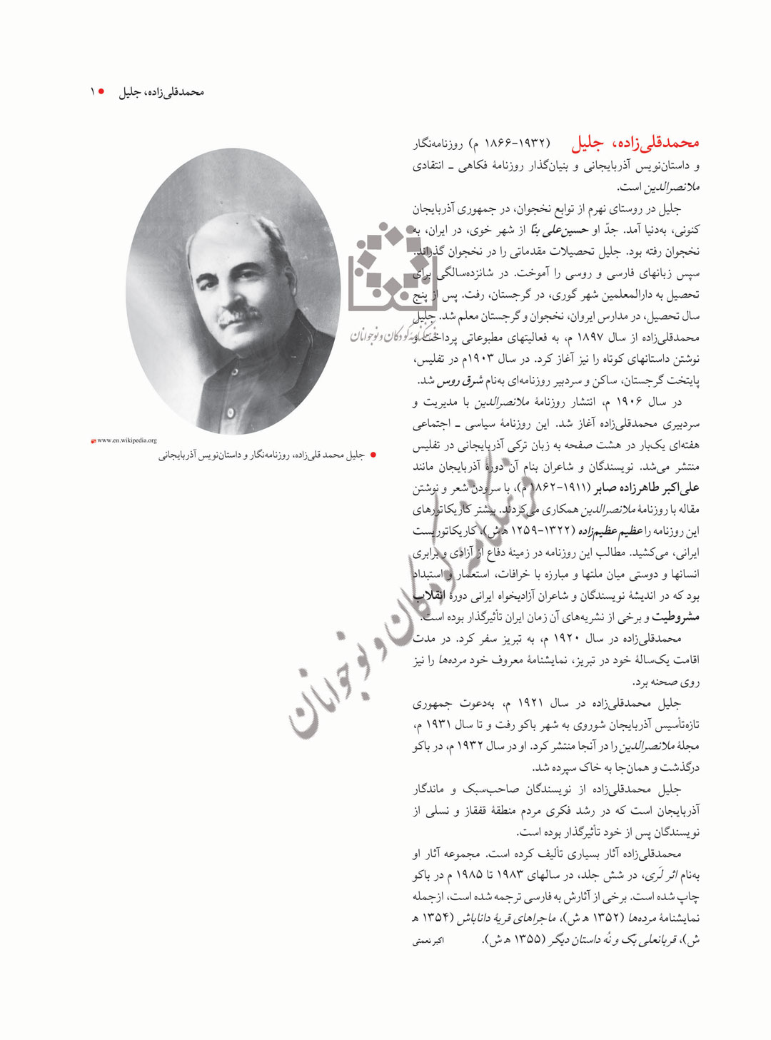 محمدقلی‌زاده، جلیل (1866-1932 م) روزنامه‌نگار و داستان‌نویس آذربایجانی و بنیان‌گذار روزنامۀ فکاهی ـ انتقادی ملانصرالدین است.