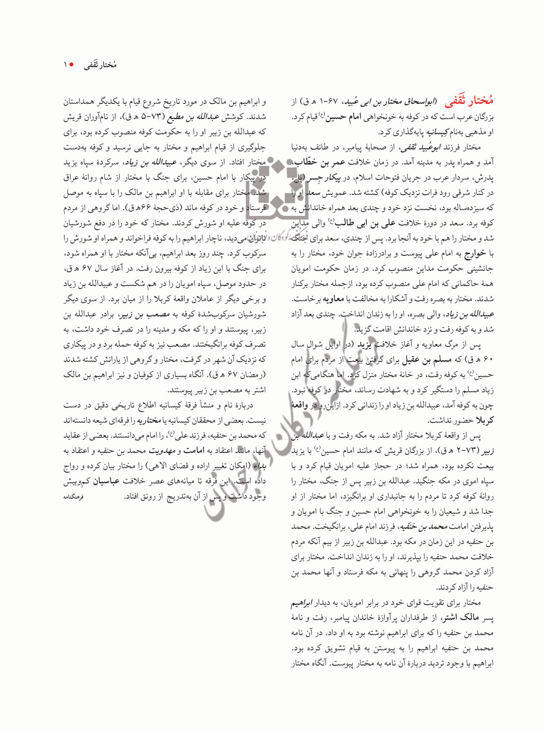 مُختار ثَقَفی (ابواسحاق مختار بن ابی عُبید، 67-1 ﻫ ق) از بزرگان عرب است که در کوفه به خونخواهی امام حسین(ع) قیام کرد. او مذهبی بهنام کِیسانیه پایهگذاری کرد. مختار ثقفی