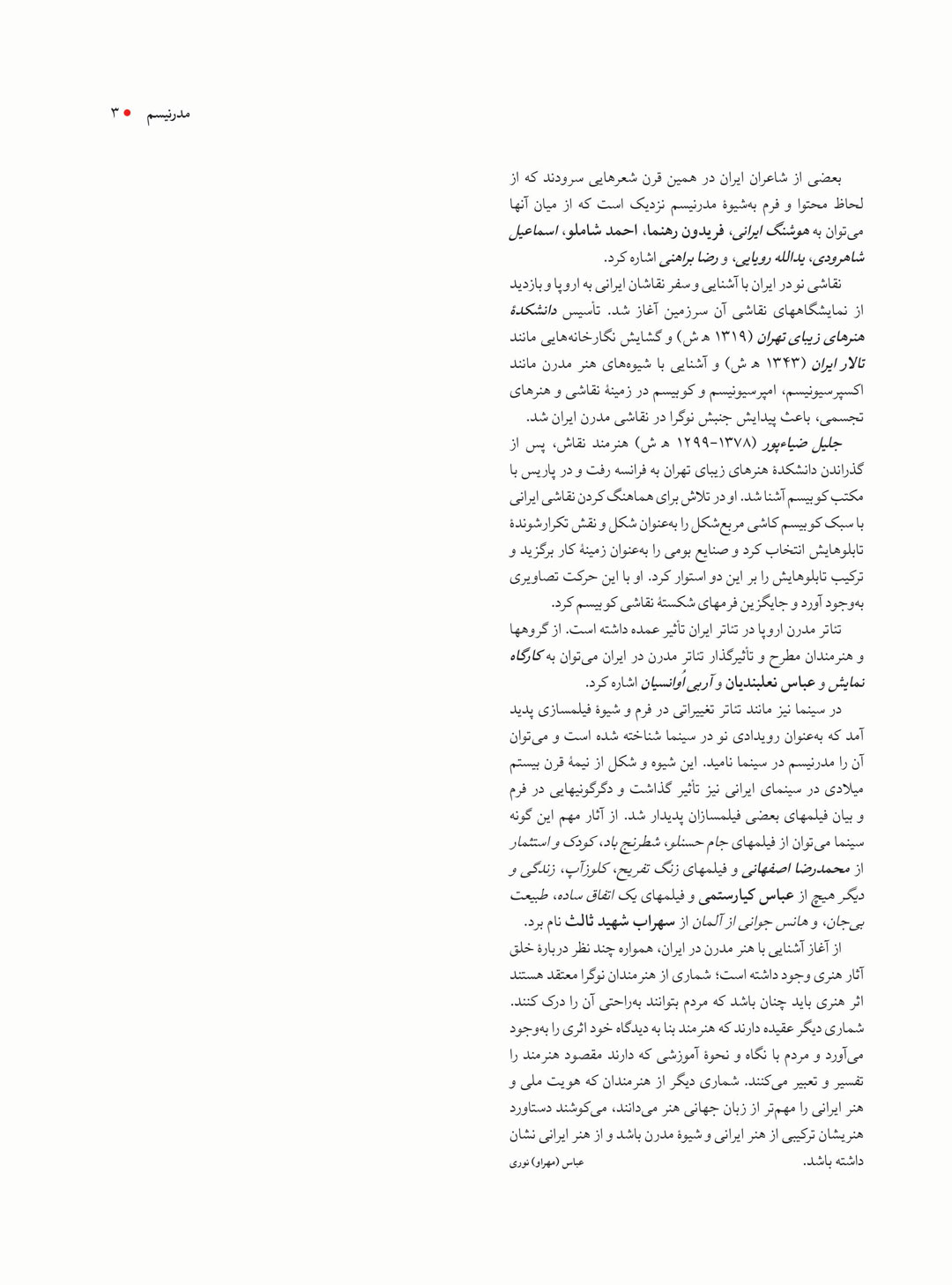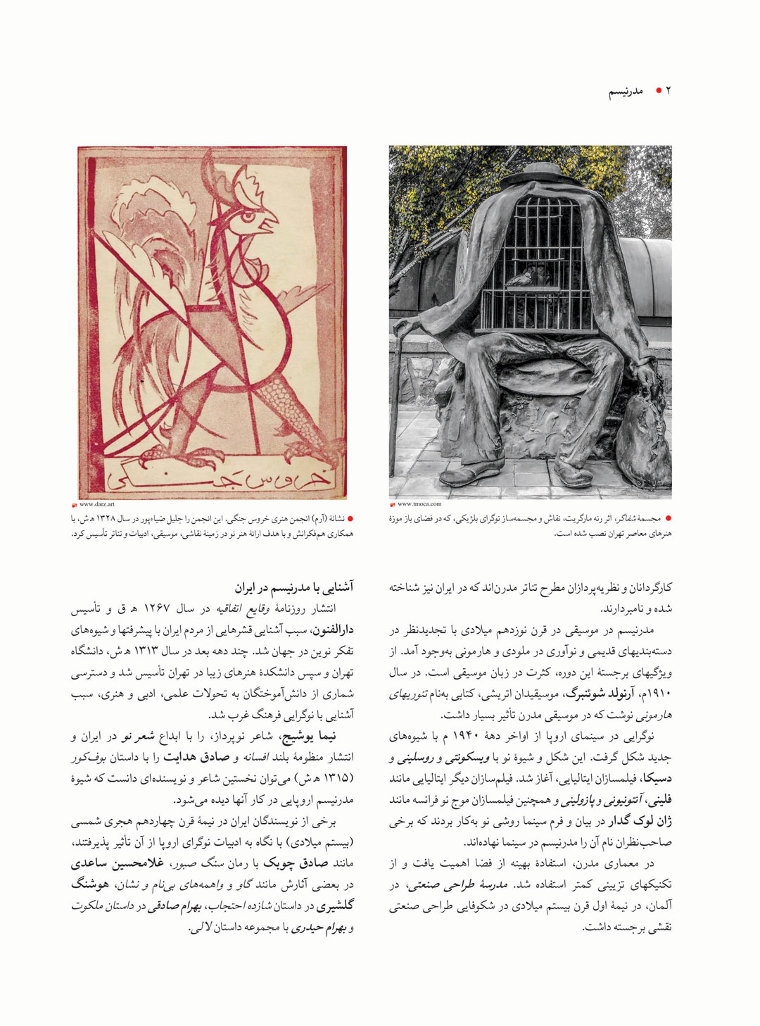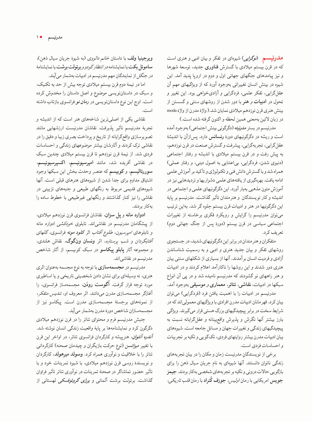 مدرنیسم (نوگرایی) شیوهای در تفکر و بیان ادبی و هنری است که در قرن بیستم میلادی با گسترش فناوری جدید، توسعۀ شهرها و نیز پیامدهای جنگهای جهانی اول و دوم در اروپا پدید آمد. این شیوه در بینش انسان تغییراتی بهوجود آورد که از ویژگیهای مهم آن عقلگرایی، تفکر علمی، فردگرایی و آزادیخواهی بود. این تغییر و تحول در ادبیات و هنر با دور شدن از روشهای سنتی و گسستن از بینش هنری قرن نوزدهم میلادی نمایان شد.( واژۀ مدرن از واژۀ moda در زبان لاتین بهمعنی همین لحظه و اکنون گرفته شده است.)