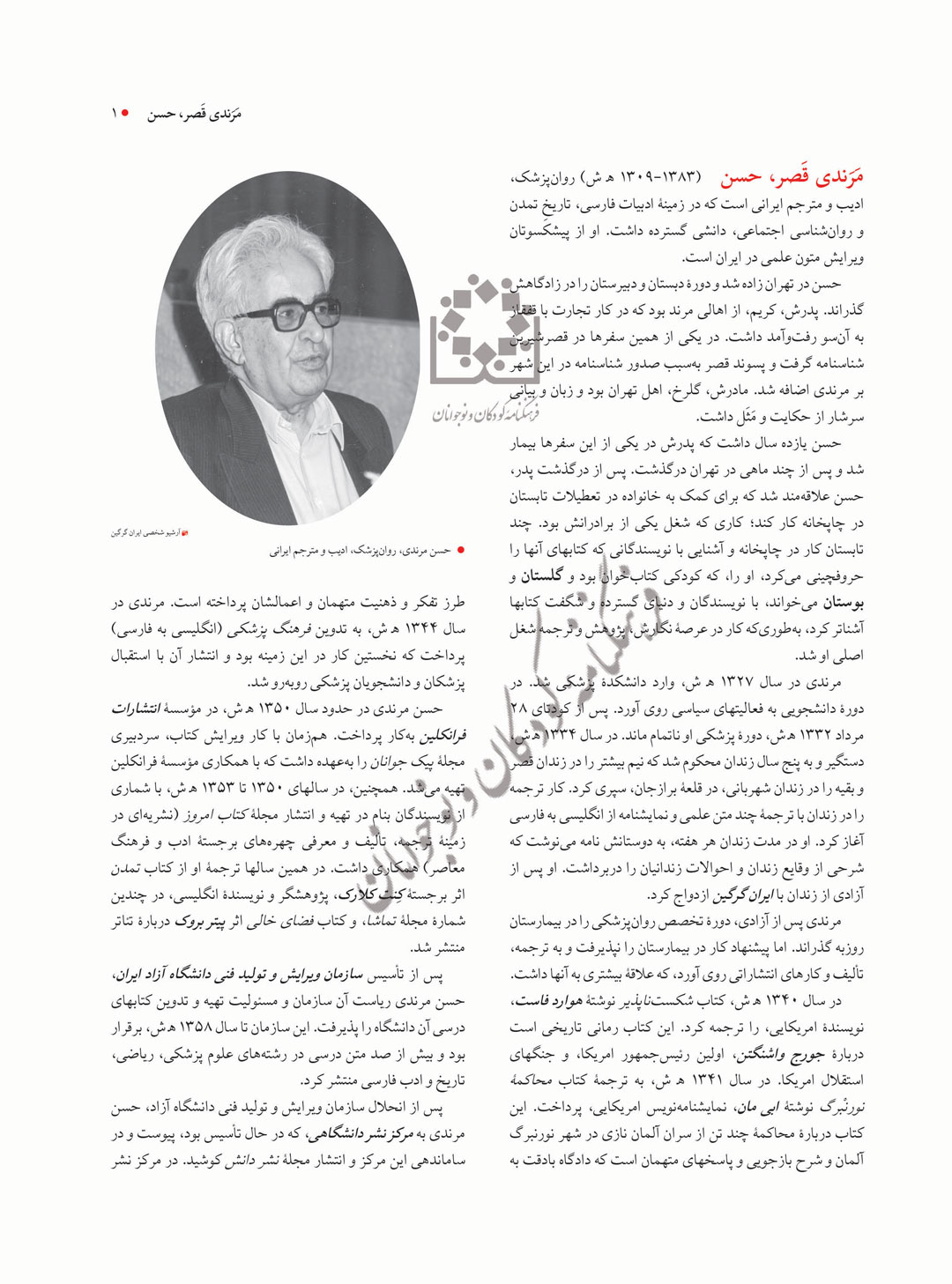 مَرَندی قَصر، حسن (1309-1383 ﻫ ش) روان‌پزشک، ادیب و مترجم ایرانی است که در زمینۀ ادبیات فارسی، تاریخِ تمدن و روان‌شناسی اجتماعی، دانشی گسترده داشت. او از پیشکسوتان ویرایش متون علمی در ایران است.