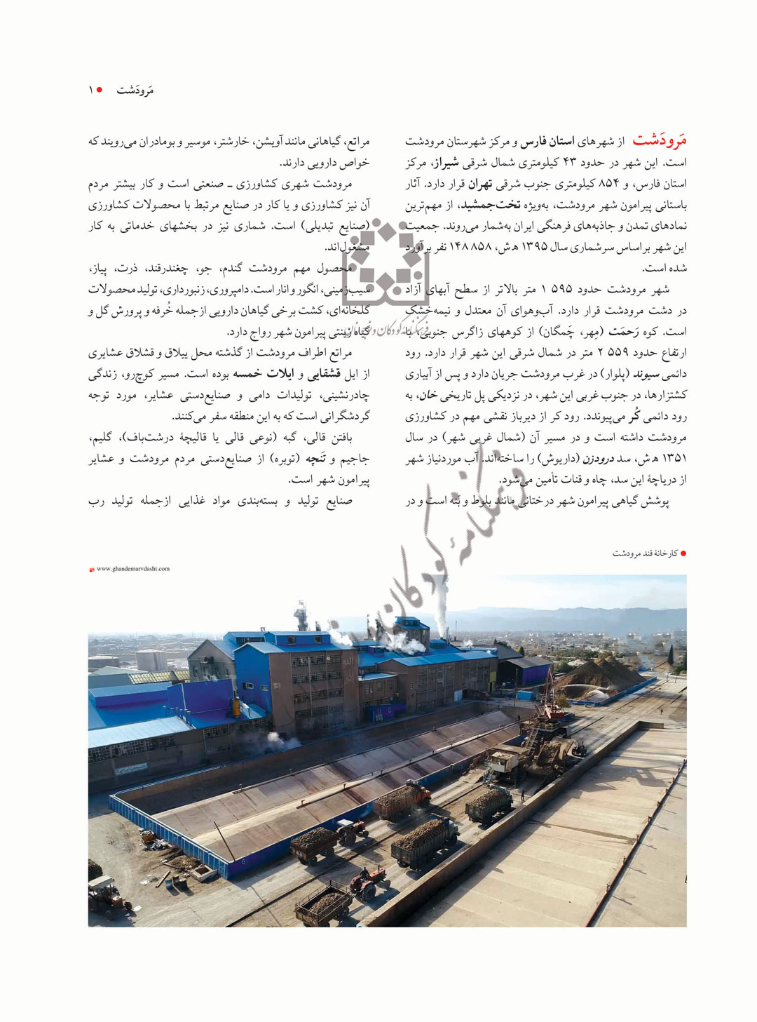 مَرودَشت از شهرهای استان فارس و مرکز شهرستان مرودشت است. این شهر در حدود ۴۳ کیلومتری شمال شرقی شیراز، مرکز استان فارس، و ۸۵۴ کیلومتری جنوب شرقی تهران قرار دارد. آثار باستانی پیرامون شهر مرودشت، بهویژه تختجمشید، از مهمترین نمادهای تمدن و جاذبههای فرهنگی ایران بهشمار میروند. جمعیت این شهر براساس سرشماری سال ۱۳۹۵ ﻫ ش، 858 148 نفر برآورد شده است.