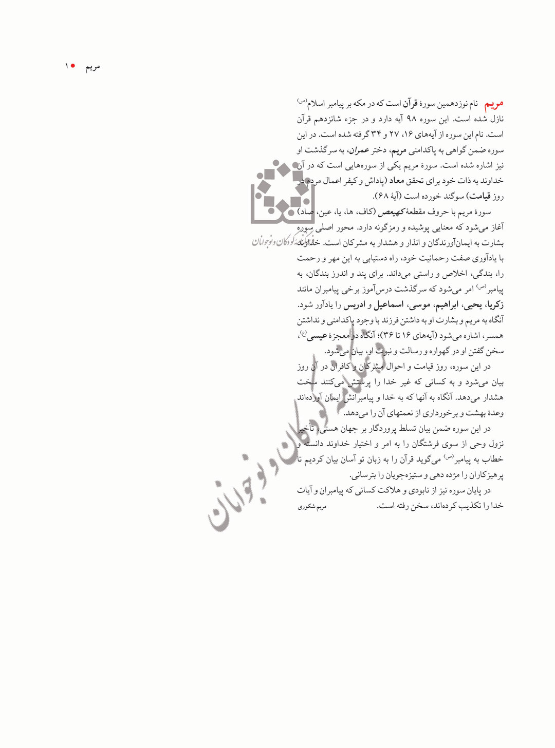 مریم نام نوزدهمین سورۀ قرآن است که در مکه بر پیامبر اسلام(ص) نازل شده است. این سوره 98 آیه دارد و در جزء شانزدهم قرآن است. نام این سوره از آیه‌های 16، 27 و 34 گرفته شده است. در این سوره ضمن گواهی به پاکدامنی مریم، دختر عمران، به سرگذشت او نیز اشاره شده است. سورۀ مریم یکی از سوره‌هایی است که در آن خداوند به ذات خود برای تحقق معاد (پاداش و کیفر اعمال مردم در روز قیامت) سوگند خورده است (آیۀ 68).