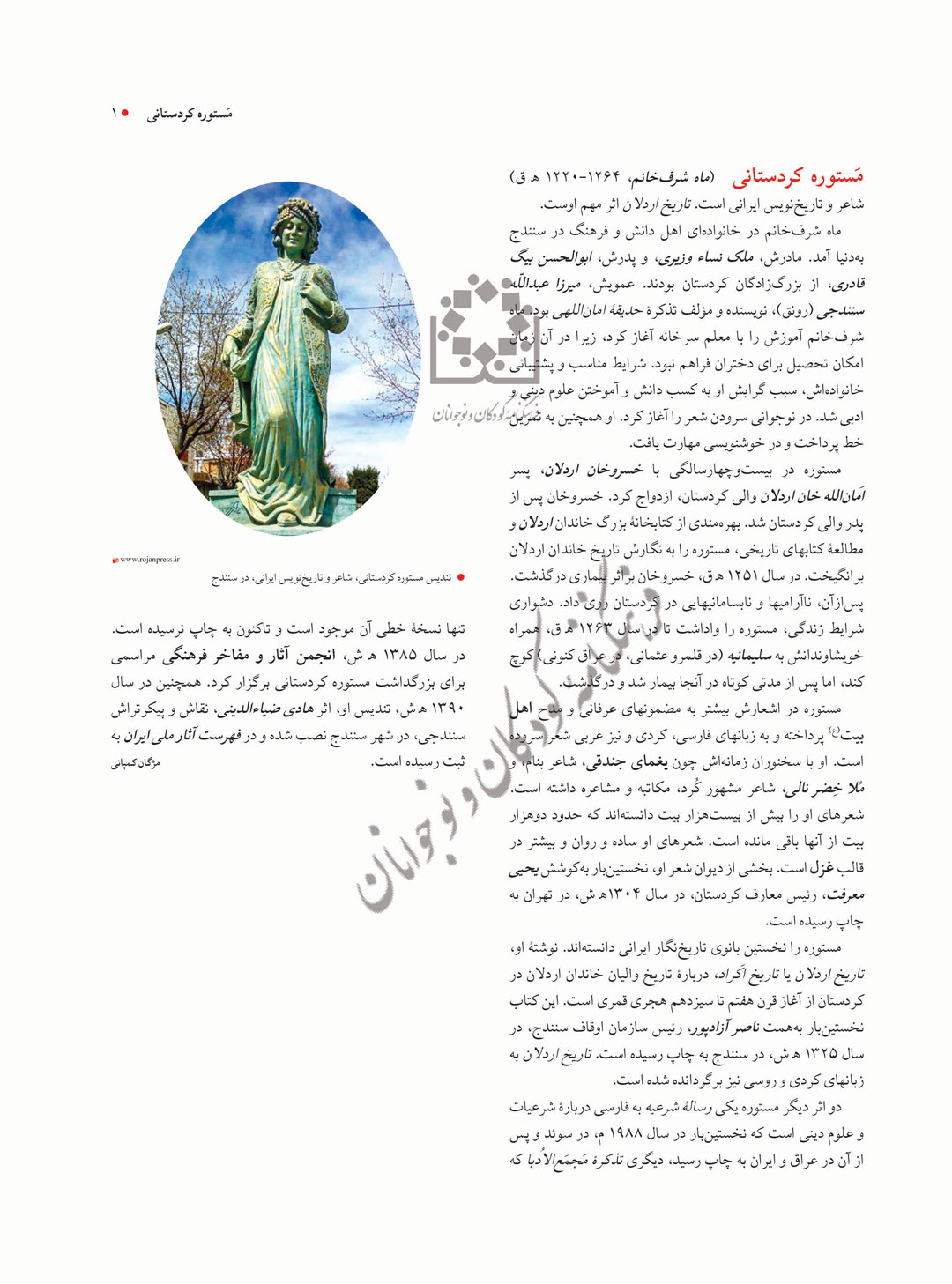 مَستوره کردستانی (ماه شرفخانم، 1264-1220 ﻫ ق) شاعر و تاریخنویس ایرانی است. تاریخ اردلان اثر مهم اوست. مستوره کردستانی