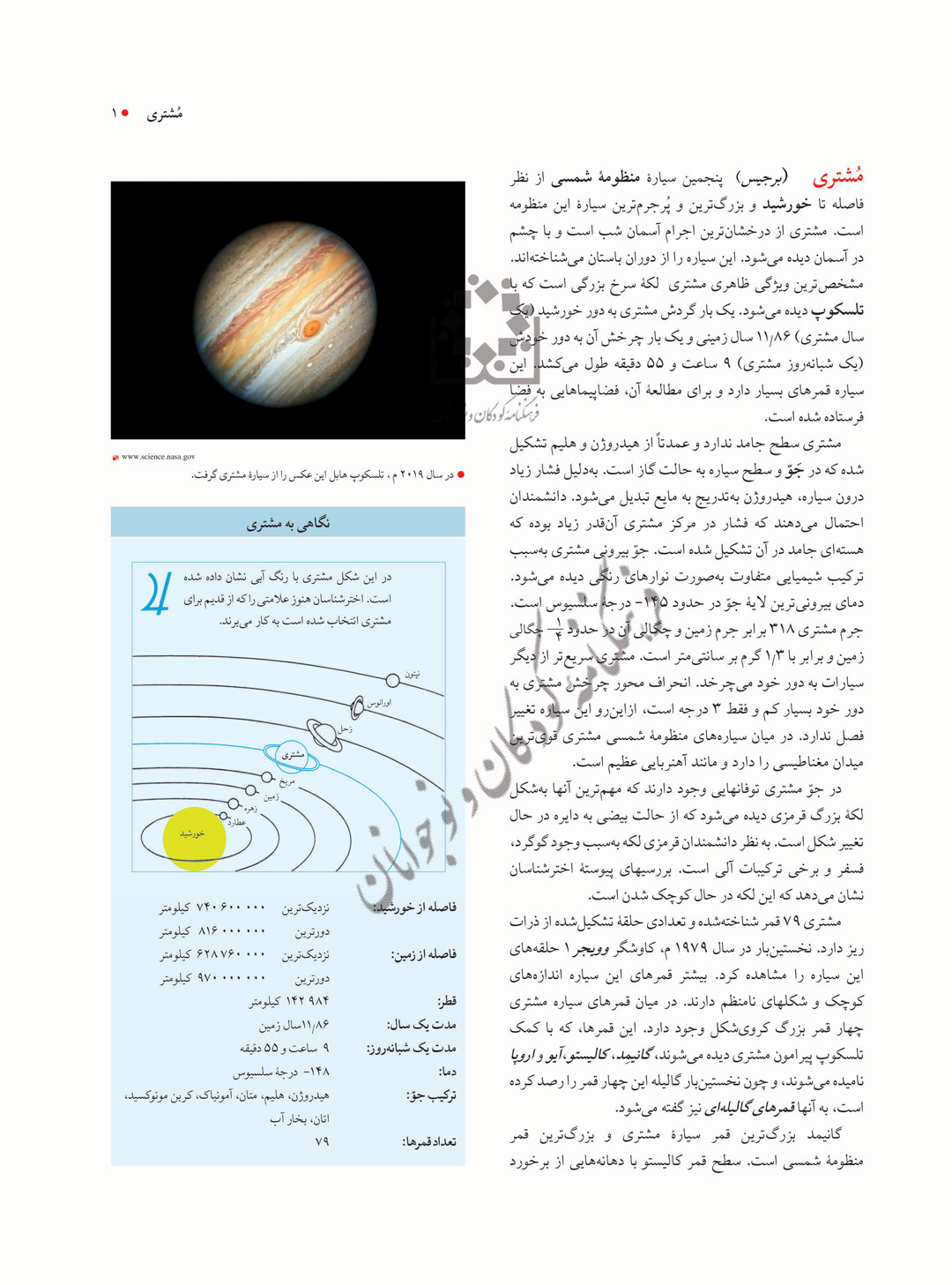 مُشتری (برجیس) پنجمین سیارۀ منظومۀ شمسی از نظر فاصله تا خورشید و بزرگ‌ترین و پُرجرم‌ترین سیارۀ این منظومه است. مشتری از درخشان‌ترین اجرام آسمان شب است و با چشم در آسمان دیده می‌شود. این سیاره را از دوران باستان می‌شناخته‌اند. مشخص‌ترین ویژگی ظاهری مشتری لکۀ سرخ بزرگی است که با تلسکوپ دیده می‌شود. یک بار گردش مشتری به دور خورشید (یک سال مشتری) 86/11 سال زمینی و یک بار چرخش آن به دور خودش (یک شبانه‌روز مشتری) 9 ساعت و 55 دقیقه طول می‌کشد. این سیاره قمرهای بسیار دارد و برای مطالعۀ آن، فضاپیماهایی به فضا فرستاده شده است.