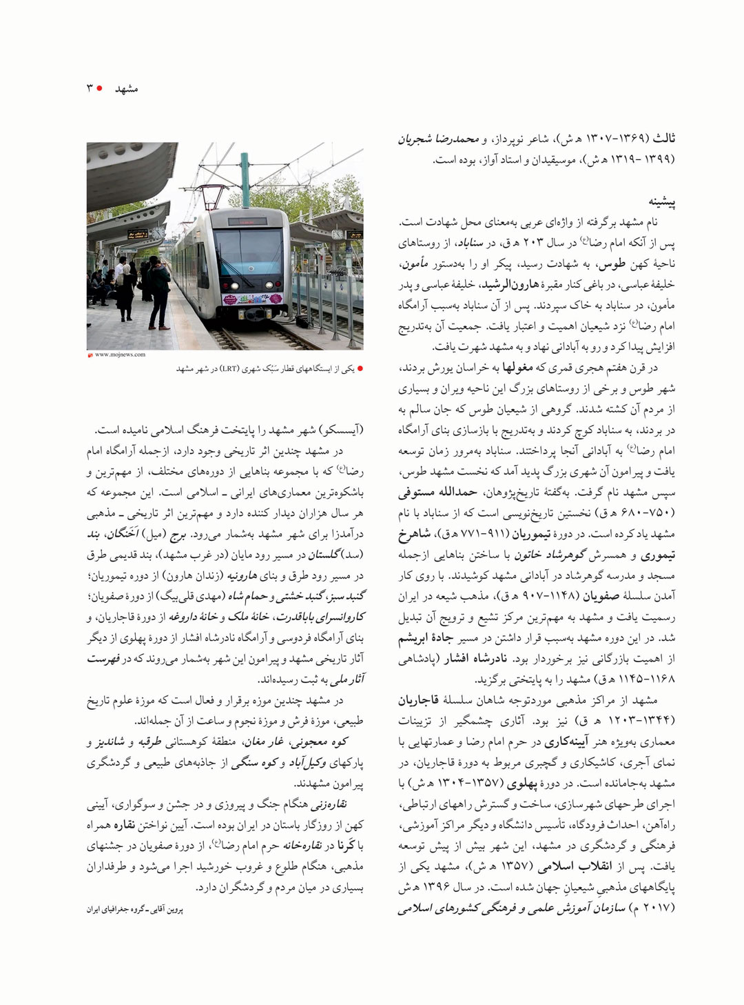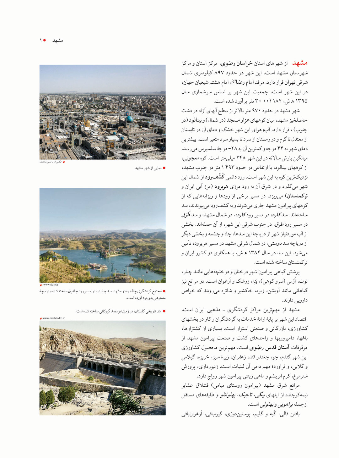 مشهد از شهرهای استان خراسان رضوی، مرکز استان و مرکز شهرستان مشهد است. این شهر در حدود ۸۹۷ کیلومتری شمال شرقی تهران قرار دارد. مرقد امام رضا(ع)، امام هشتم شیعیان جهان، در این شهر است. جمعیت این شهر بر اساس سرشماری سال ۱۳۹۵ ﻫ ش، 184 001 30 نفر برآورد شده است.