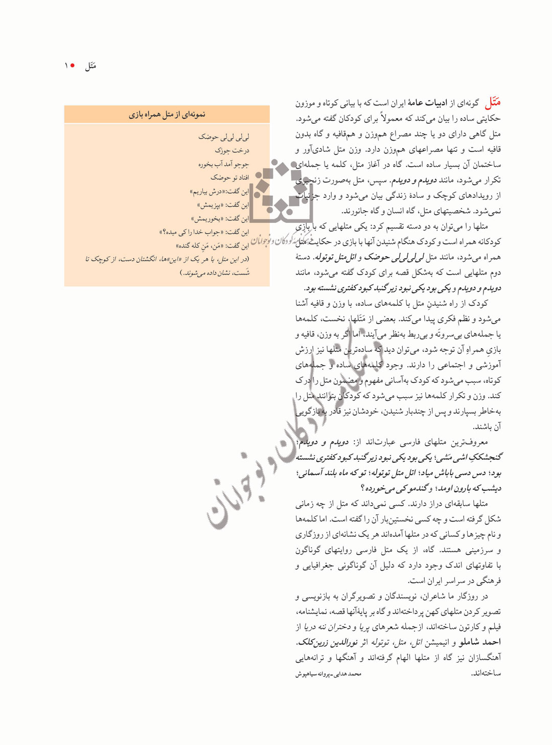 مَتَل گونهای از ادبیات عامۀ ایران است که با بیانی کوتاه و موزون حکایتی ساده را بیان میکند که معمولاً برای کودکان گفته میشود. متل گاهی دارای دو یا چند مصراع هموزن و همقافیه و گاه بدون قافیه است و تنها مصراعهای هموزن دارد. وزن متل شادیآور و ساختمان آن بسیار ساده است. گاه در آغاز متل، کلمه یا جملهای تکرار میشود، مانند دویدم و دویدم. سپس، متل بهصورت زنجیری از رویدادهای کوچک و سادۀ زندگی بیان میشود و وارد جزئیات نمیشود. شخصیتهای متل، گاه انسان و گاه جانورند.